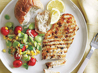 - Grilled chicken cutlets with summer succotash